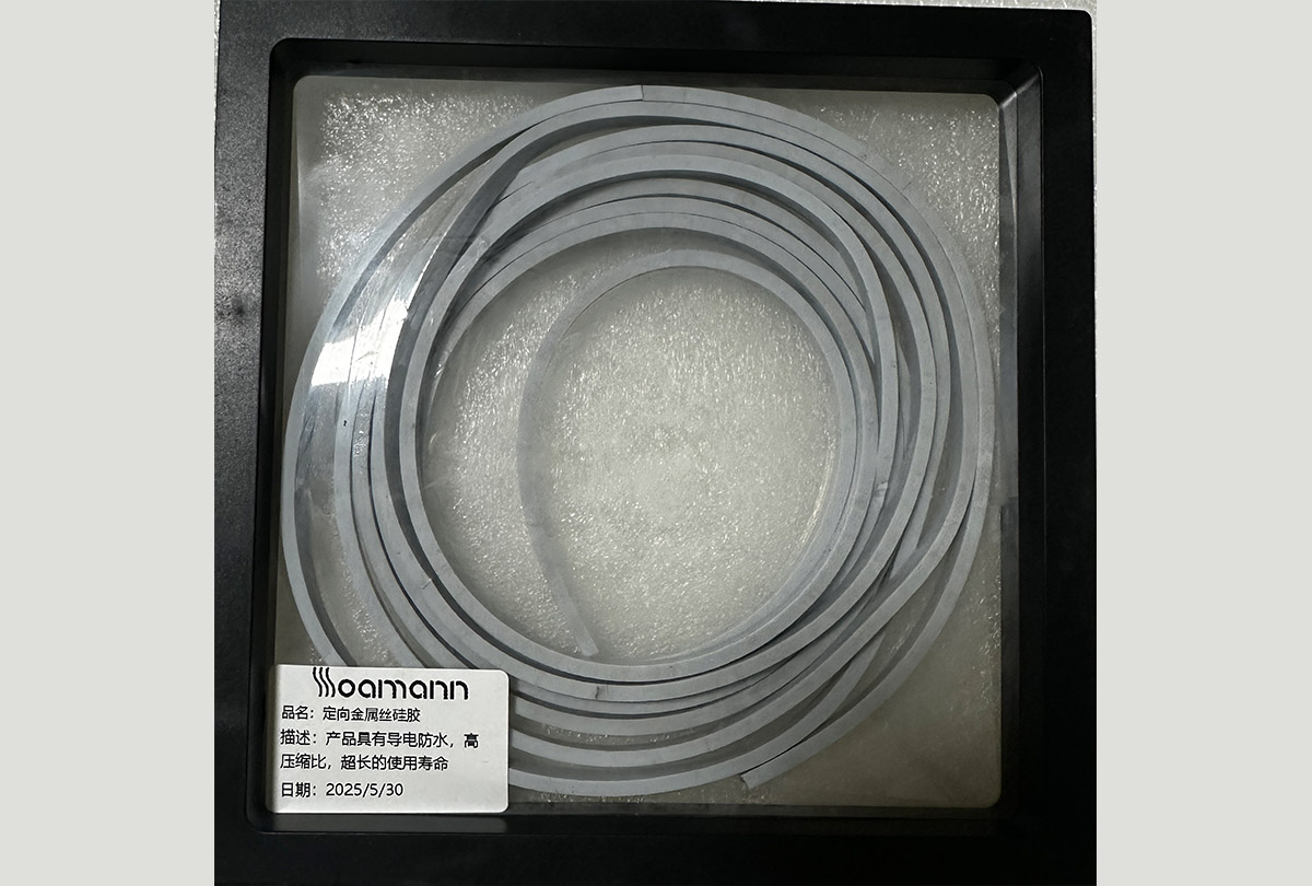 产品填补国内 空白,具有导电和防水功能,寿命在10年以上,可反复实验、拆卸不影响性能,产品硬度低,对设备造成的应力小。产品压缩性好,可以吸收较大的缝隙,对应大跨度导电防水密封具有很好的解决方案。产品可以取代传统铝镀银导电橡胶材料,簧片,波纹管,铍铜编制网,丝网衬垫,金属橡胶等产品